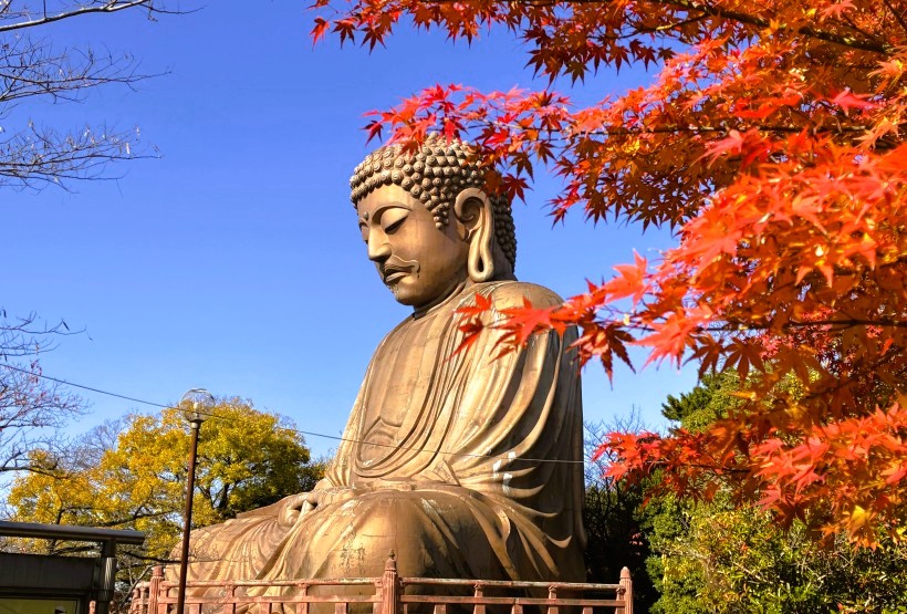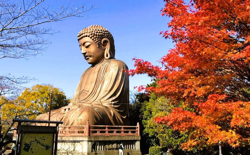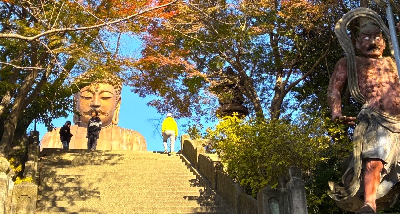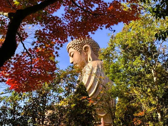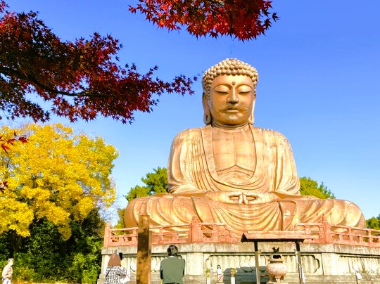 | 聚楽園大仏は奈良の大仏(14.98m)、鎌倉の大仏(12.38m)より大きく18.79mあります。 |