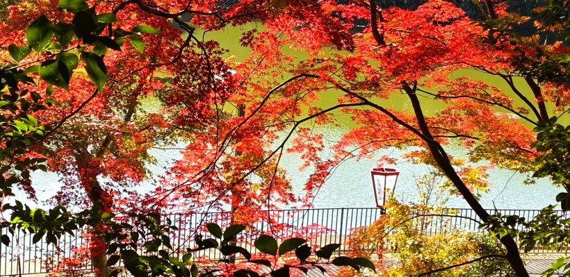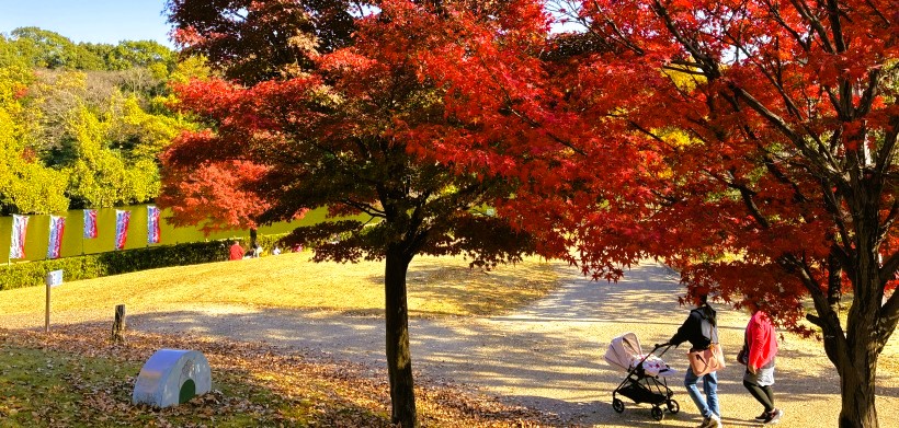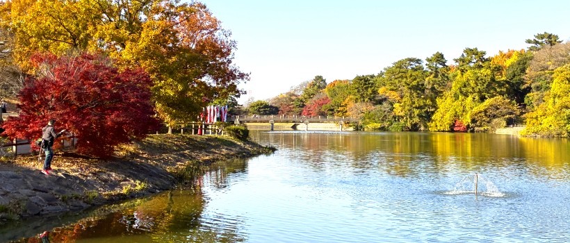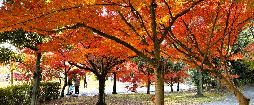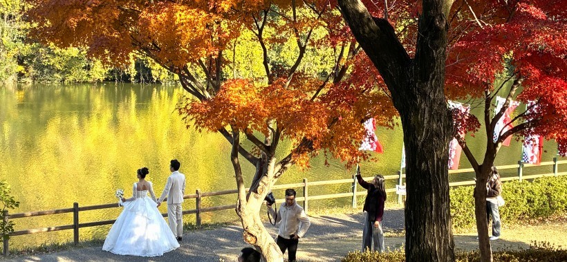 | 聚楽園公園は11月下旬から12月上旬には7種類550本のもみじが園内を彩ります。各種の写真撮影も行われていました。 |