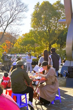 | 訪れた日には、聚楽園公園もみじまつりが開催されていて、しあわせ村モニュメント広場で、とうかいグルメフェスが行われ、キッチンカーなどで様々なグルメが販売されていました。 |