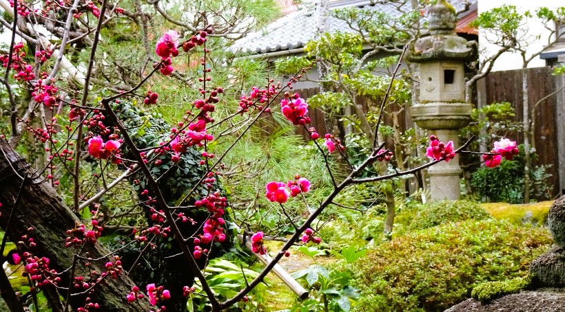 | 文泉堂は、元は江戸時代後期に創業した商家で、明治時代以前に作庭された近代町家の庭園が残ります。 長浜市の保存指定樹木にもなっている梅の木は樹齢400年とも言われる古木で、狩野派の画家・岸駒が銭作に宿泊した際の礼にこの梅を描いた襖絵も残っています。 |