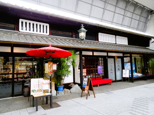 | 文泉堂は江戸時代後期に「銭作」という屋号の両替商としてスタートしました。脇の札には《天保9年(1838)井伊豊前守(=10代彦根藩主・井伊直幸の子の井伊直容)、銭作の桟敷で曳山祭りを見学する。》と残るなど、長浜の曳山まつりを鑑賞に訪れた井伊家を迎えるクラスの商家でした。当時の初代・吉田作平は長浜町長にも就任し、近代〜昭和にかけて徐々に家業も移ろい、新聞配達所・文具店を経て町の本屋を営むようになりました。その過程で一時失われたのが「桟敷席」です。しかし現代になり先代の当主が古写真や伝承から桟敷を復元しました。その桟敷とともに1998年(平成10年)にリニューアルしたのが今の文泉堂です。 |