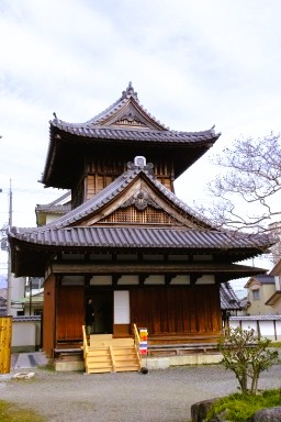 | 大通寺の山門は高さ18メートルもあり、長浜の街の中でもとても存在感があります。重層になっているので、迫力があり堂々とした印象を与えます。総ケヤキ造りの二層の山門は、33年の歳月をかけて1841年に完成しました。東本願寺の山門を模して造られたといい、龍や大波が今にも迫り来るような躍動感に満ちた彫刻は必見です。 |