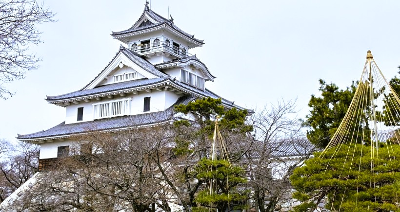 | 浅井攻めの功績から浅井の旧領・湖北三郡を与えられた豊臣秀吉は、1574年、琵琶湖に面した今浜(現 長浜)の地に自身初めての城を築きました。これが秀吉の出世城として名高い長浜城です。豊臣秀吉が城主として過ごした長浜城は、江戸時代前期に廃城になり、遺構は彦根城や大通寺に移築されました。その跡には、僅かな石垣と井戸だけが残されていましたが、昭和58年(1983)に安土桃山時代の城郭を模して「昭和新城」を復元されました。内部は歴史博物館として公開されています。 |