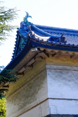 | 正門鉄橋の上から宮殿側を見ると、白い壁が印象的な「伏見櫓」が見られます。青い空と緑に映えるとても美しい櫓です。白壁と黒い屋根瓦のコントラストが美しく、絵になる絶景スポットとなっています。三代将軍家光の頃に京都の伏見城にあった櫓を解体して移設したという言い伝えがあります。 |