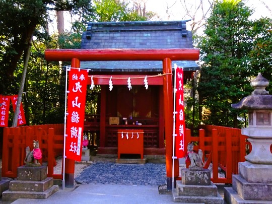 | 本殿の西側にある小高い丘の上に鎮座する小さなお稲荷さんは、鶴岡八幡宮の造営以前にこの地にあった土地の神で、八幡宮造営にともない、この地に遷されたものです。つまり、鶴岡八幡宮よりも古く、社殿は小さいながらも一間社流造(切妻、平入り)で、古い室町時代の形式を伝えているといわれています。小さいながら境内で最も古い建物なので、国の重要文化財に指定されています。 |
