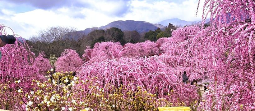 鈴鹿の森庭園は、鈴鹿山脈のふもとにある赤塚植物園グループが運営するしだれ梅の庭園です。日本中から集められたしだれ梅の名木は、呉服枝垂(くれはしだれ)を中心に約200本あります。脈々と伝えられてきた、日本の伝統的な技を現代に伝え、未来へ継承していくための研究栽培農園で、開花期間中のみ一般公開を行います。