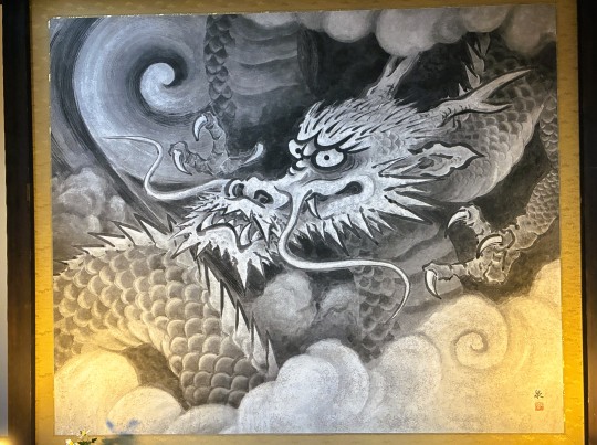 | 「衝立の龍」は、左からゆっくり見ていくと、動いているように大きさが変わって見えます。 |