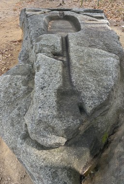 酒船石は奈良県明日香村にある、飛鳥時代の遺跡です。飛鳥宮の北東の丘の上にあり、長さは約5.5m、幅約2.3m、厚さは約1mで、上面には皿のようなくぼみがいくつかあり、それらが溝で繋がっているという不思議な石です。「酒を造るための船形の石」という意味で「酒船石」と呼ばれていますが、石の目的には、様々な説があります。