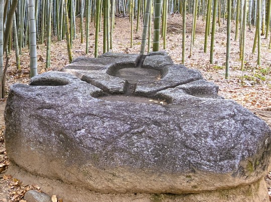 | 酒船石の用途は、酒を造る設備、あるいは薬などを造るための設備など諸説ありますが、水を使う祭祀施設の一部、庭園の一部、導水施設も含めた丘全体を巨大な施設として一体的に利用されたとの考え方もあります。 |
