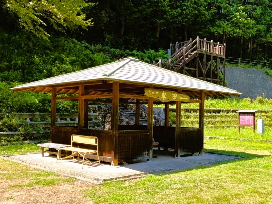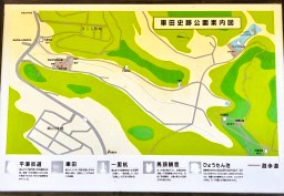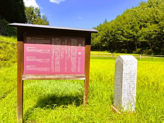 車田周辺は車田史跡公園として整備されています。駐車場に車を停めてそのまま遊歩道をすすむと奥には馬頭観音、見晴広場、瓢箪の形をしたため池「ひょうたん池」があります。 |