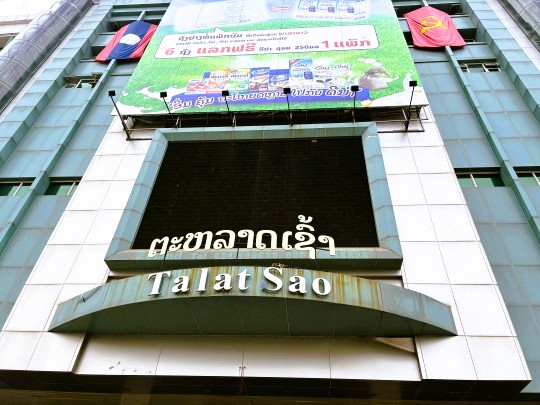 | タラート・サオはヴィエンチャン市内最大のショッピングセンターです。タラートとは市場、サオとは朝の意味ですが、朝8時頃から夕方4時頃まで開いています。 |