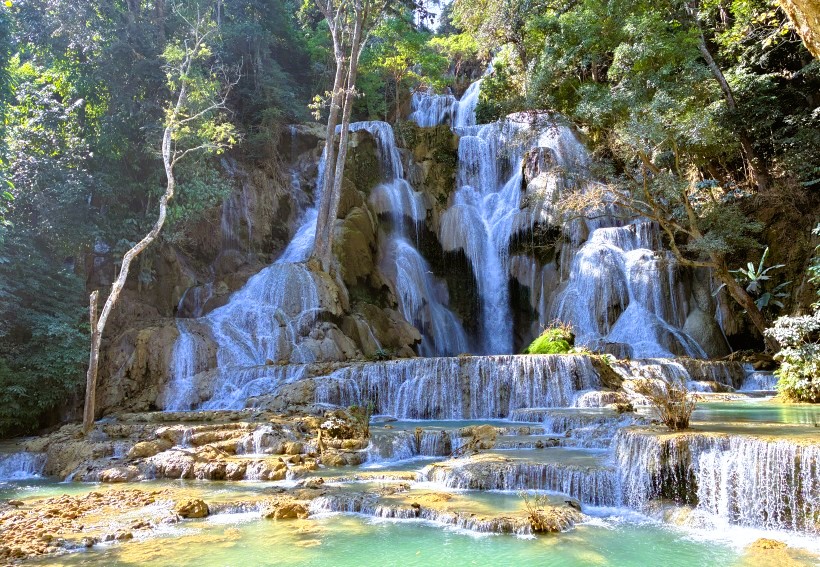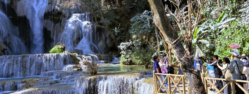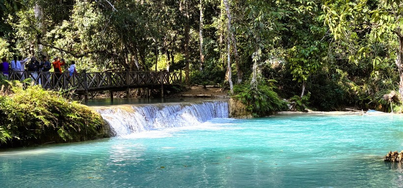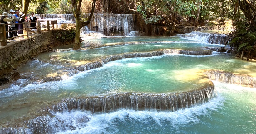 クアンシーの滝は、ルアンパバーン市街地から南に約29kmの山間部にあるラオスで最も美しいとされる滝です。流れ落ちる水が非常に美しいことで知られ、観光客に人気のピクニックスポットになっています。最後の落差約50メートルの大きな滝までは遊歩道が完備されています。