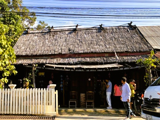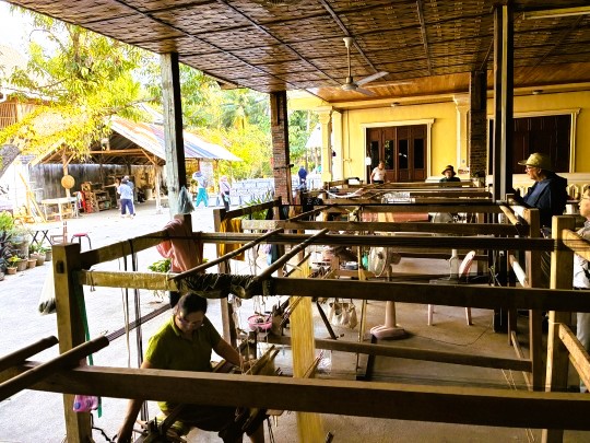 | この村では、現地の人が織物を織っている様子が見れ、綺麗な織物を買うこともできます。 |