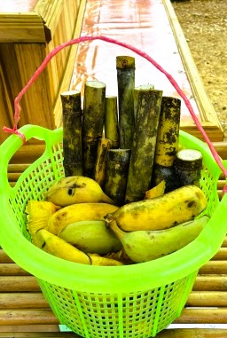 | 餌はバナナとカボチャとサトウキビでしたが、次々と食べるので、バケツいっぱいがすぐになくなりました。 |