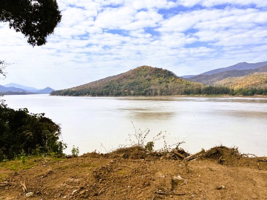 | 横をメコン川が流れていました。ゾウの水浴びにはちょうどいい場所です。 |
