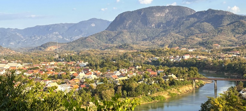 | ルーシーの丘を登ると、ルアンパバーンの街並みがよく見えます。ナムカーン川方面には世界遺産のルアンパバーンの街並みが広がっています。 |