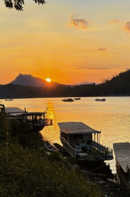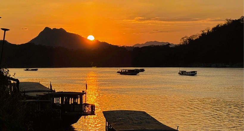 | ルアンパバーンのサンセットは幻想的な景色を見る事ができます。夕暮れ時には、沈みゆく太陽が街を金色に染め上げる様子は圧巻です。 |
