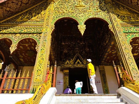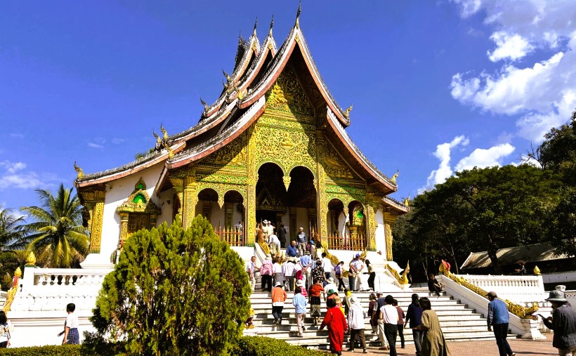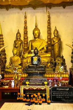 | 黄金の祠にはルアンパバーンの名前の由来になったパバーン仏が鎮座しています。パバーン仏は14世紀にクメール王朝(現カンボジア)からラオ人最初の統一国家であるランサーン王国の初代王であるファーグム王に贈られた純金製の仏像です。 |