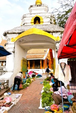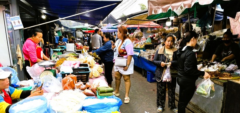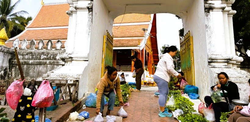 | ルアンパバーンの朝市は,街の中心部であるシーサワンウォン通りから少し外れた小路に広がり,地元の人々と観光客で賑わう活気ある場所です。この朝市は,観光名所のひとつであり,地元の文化や生活を垣間見ることができる貴重なスポットになっています。 |